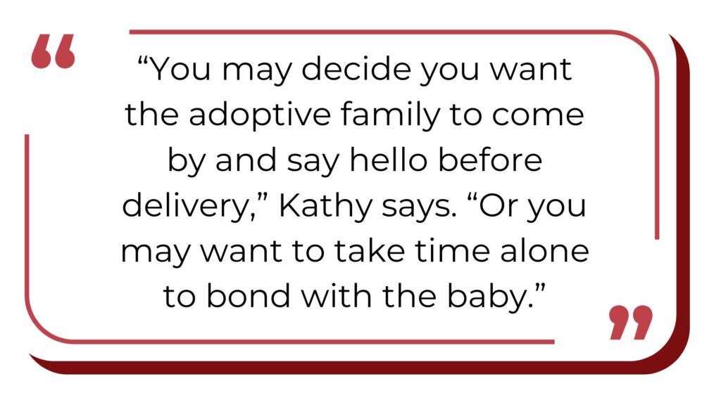 Bond Your Way: You may wish to spend some one on one time with your baby directly before or after signing those papers so you can have some private time to say “see you later.”